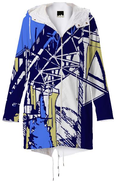 Light weight water resistant raincoat meant for easy layering in all sorts of rainy climates. Features waist & bottom hem drawstrings for definition and a double snap hood to protect against wind & rain.