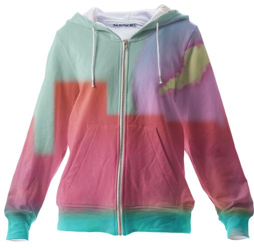 Slim fitting zip up hoodie with front kangaroo pockets metal zipper and drawstring hood.