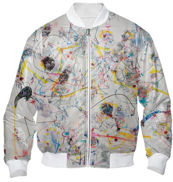 Light weight bombr jacket with your choice of white or black ribbing slight padding zip up front and side pockets. The inside is adorned with PAOM straps for swinging over your shoulders so you dont have to hold it.