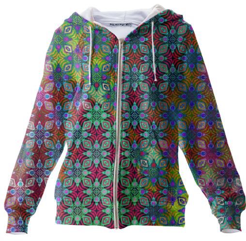 Slim fitting zip up hoodie with front kangaroo pockets metal zipper and drawstring hood.