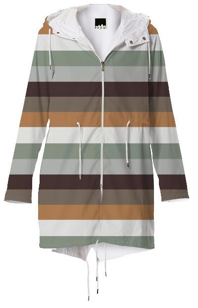 Light weight water resistant raincoat meant for easy layering in all sorts of rainy climates. Features waist & bottom hem drawstrings for definition and a double snap hood to protect against wind & rain.