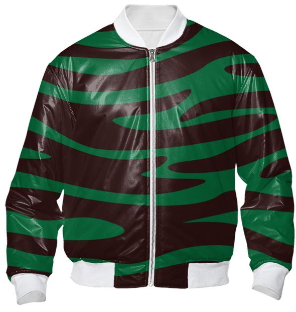 Light weight bombr jacket with your choice of white or black ribbing slight padding zip up front and side pockets. The inside is adorned with PAOM straps for swinging over your shoulders so you dont have to hold it.