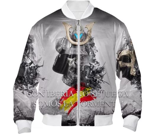 Light weight bombr jacket with your choice of white or black ribbing slight padding zip up front and side pockets. The inside is adorned with PAOM straps for swinging over your shoulders so you dont have to hold it.