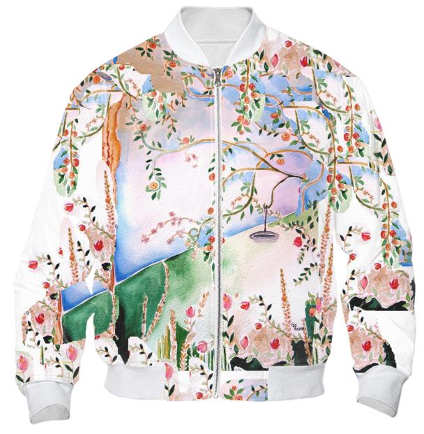 Light weight bombr jacket with your choice of white or black ribbing slight padding zip up front and side pockets. The inside is adorned with PAOM straps for swinging over your shoulders so you dont have to hold it.