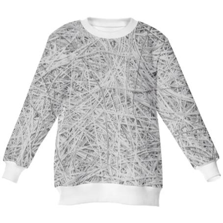 Bulky fitting neoprene sweatshirt with solid black or white neck cuff and waistband ribbing.