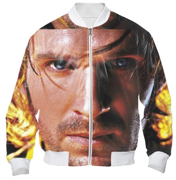 Light weight bombr jacket with your choice of white or black ribbing slight padding zip up front and side pockets. The inside is adorned with PAOM straps for swinging over your shoulders so you dont have to hold it.