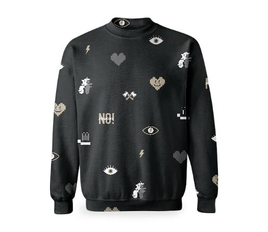 Basic crew neck sweatshirt with made with soft recycled polyester sweatshirt fabric. Features printed neck arm and bottom cuffs.