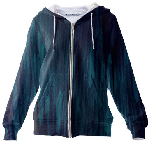 Slim fitting zip up hoodie with front kangaroo pockets metal zipper and drawstring hood.