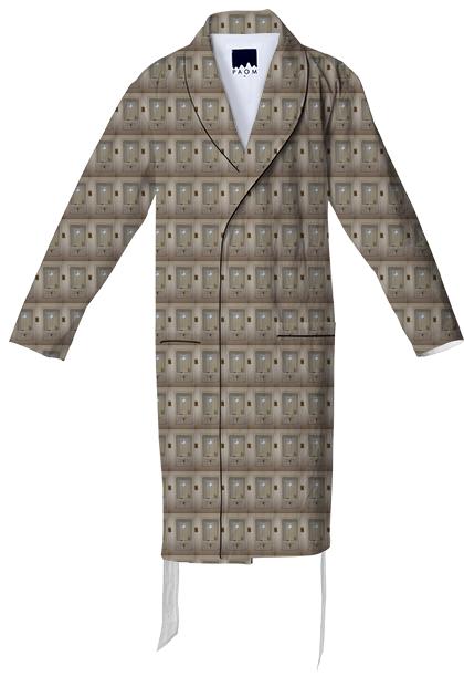 Comfortable fitting cotton robe with two front pockets and stylish black piping on the collar & pocket seams. Includes a black sash to tie at the waist or let hang through two side belt loops.