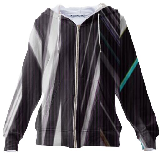 Slim fitting zip up hoodie with front kangaroo pockets metal zipper and drawstring hood.