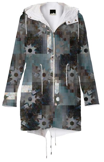 Light weight water resistant raincoat meant for easy layering in all sorts of rainy climates. Features waist & bottom hem drawstrings for definition and a double snap hood to protect against wind & rain.