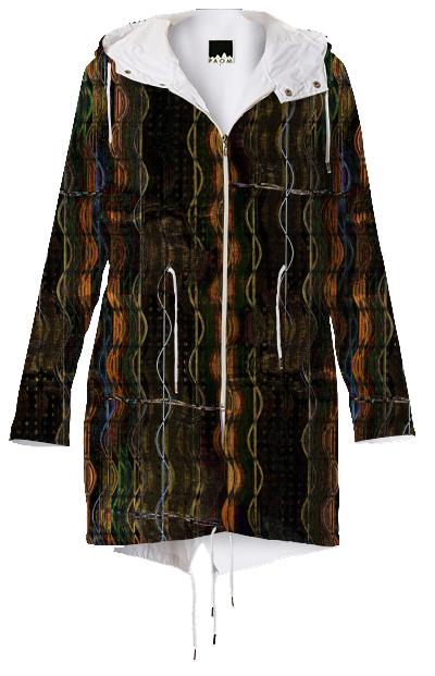 Light weight water resistant raincoat meant for easy layering in all sorts of rainy climates. Features waist & bottom hem drawstrings for definition and a double snap hood to protect against wind & rain.