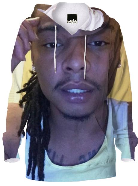 Slim fitting pullover hoodie with front kangaroo pocket and drawstring hood.