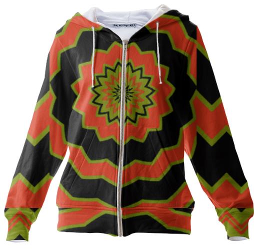 Slim fitting zip up hoodie with front kangaroo pockets metal zipper and drawstring hood.