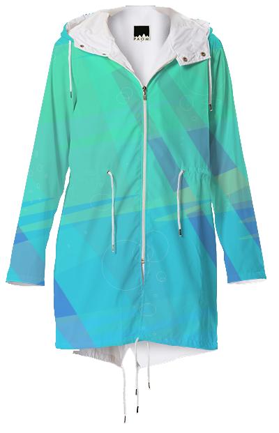 Light weight water resistant raincoat meant for easy layering in all sorts of rainy climates. Features waist & bottom hem drawstrings for definition and a double snap hood to protect against wind & rain.