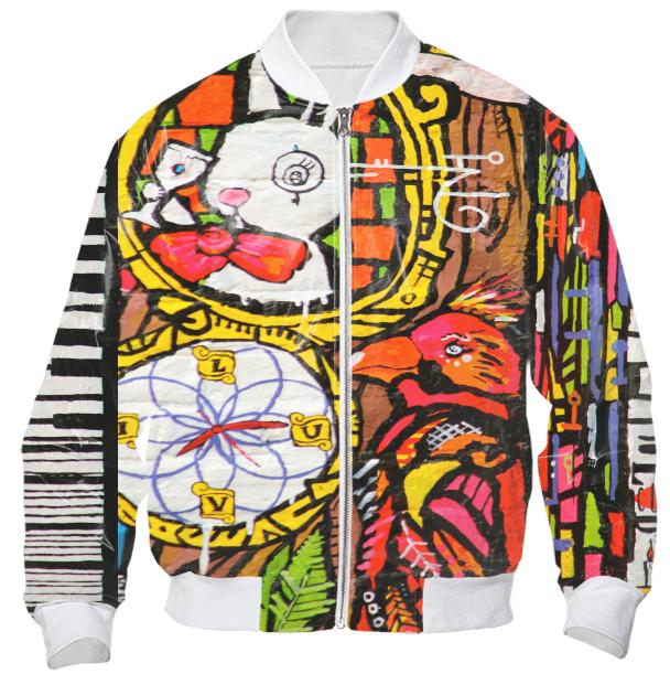 Light weight bombr jacket with your choice of white or black ribbing slight padding zip up front and side pockets. The inside is adorned with PAOM straps for swinging over your shoulders so you dont have to hold it.