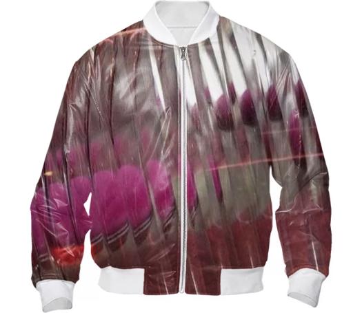 Light weight bombr jacket with your choice of white or black ribbing slight padding zip up front and side pockets. The inside is adorned with PAOM straps for swinging over your shoulders so you dont have to hold it.