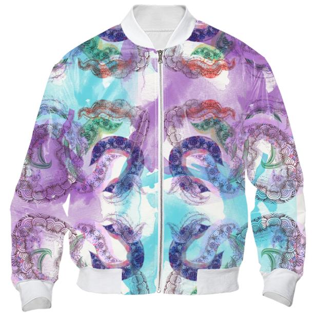 Light weight bombr jacket with your choice of white or black ribbing slight padding zip up front and side pockets. The inside is adorned with PAOM straps for swinging over your shoulders so you dont have to hold it.