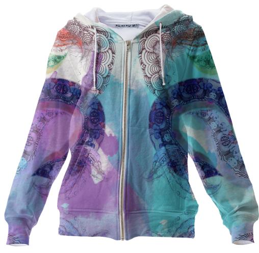 Slim fitting zip up hoodie with front kangaroo pockets metal zipper and drawstring hood.