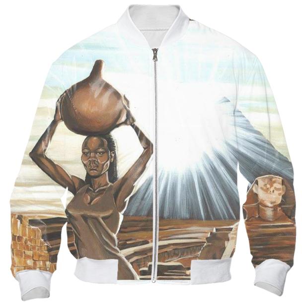 Light weight bombr jacket with your choice of white or black ribbing slight padding zip up front and side pockets. The inside is adorned with PAOM straps for swinging over your shoulders so you dont have to hold it.