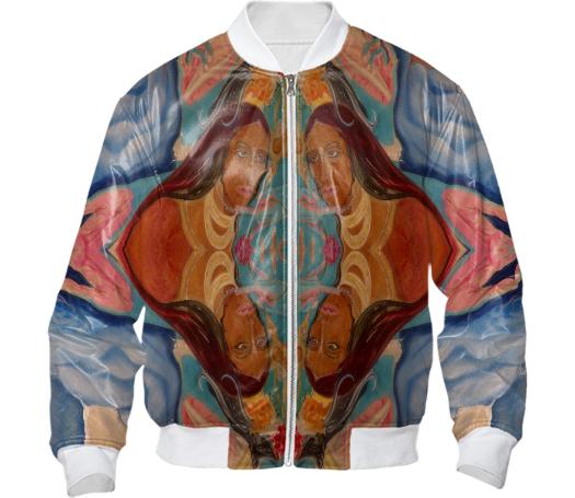 Light weight bombr jacket with your choice of white or black ribbing slight padding zip up front and side pockets. The inside is adorned with PAOM straps for swinging over your shoulders so you dont have to hold it.