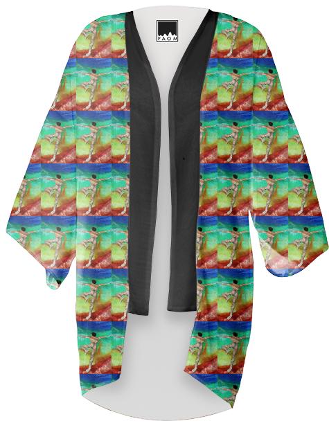 Flowy chiffon kimono falls nicely at mid thigh. Great for layering or using as a beach cover up.