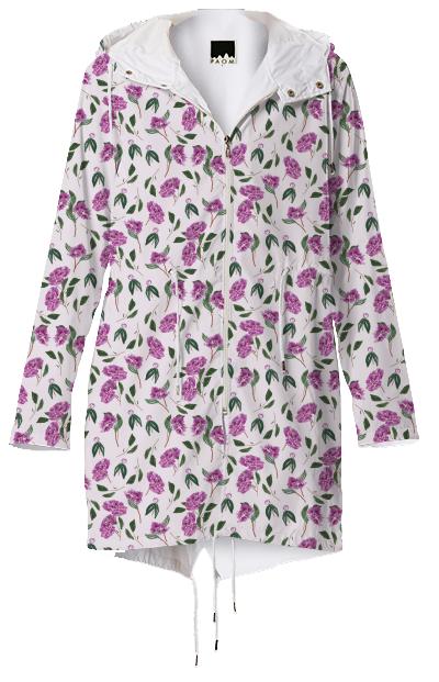 Light weight water resistant raincoat meant for easy layering in all sorts of rainy climates. Features waist & bottom hem drawstrings for definition and a double snap hood to protect against wind & rain.