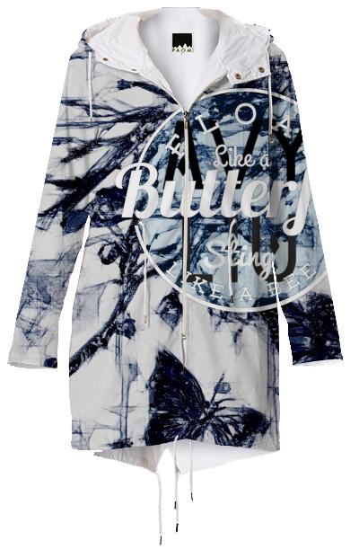 Light weight water resistant raincoat meant for easy layering in all sorts of rainy climates. Features waist & bottom hem drawstrings for definition and a double snap hood to protect against wind & rain.