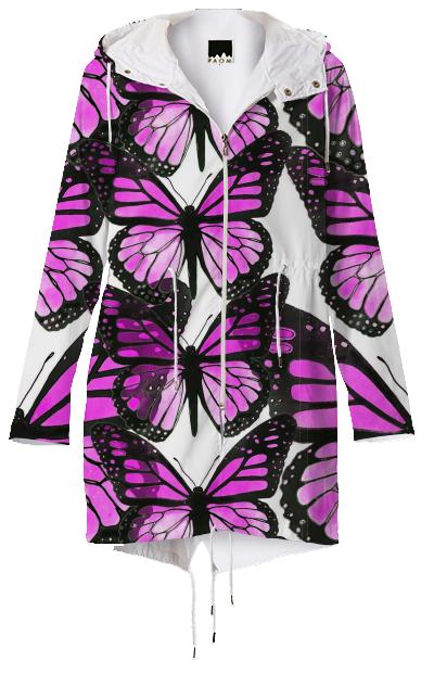 Light weight water resistant raincoat meant for easy layering in all sorts of rainy climates. Features waist & bottom hem drawstrings for definition and a double snap hood to protect against wind & rain.