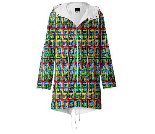 Light weight water resistant raincoat meant for easy layering in all sorts of rainy climates. Features waist & bottom hem drawstrings for definition and a double snap hood to protect against wind & rain.