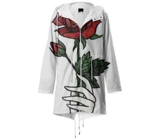 Light weight water resistant raincoat meant for easy layering in all sorts of rainy climates. Features waist & bottom hem drawstrings for definition and a double snap hood to protect against wind & rain.