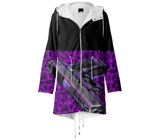 Light weight water resistant raincoat meant for easy layering in all sorts of rainy climates. Features waist & bottom hem drawstrings for definition and a double snap hood to protect against wind & rain.