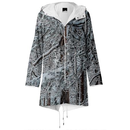 Light weight water resistant raincoat meant for easy layering in all sorts of rainy climates. Features waist & bottom hem drawstrings for definition and a double snap hood to protect against wind & rain.