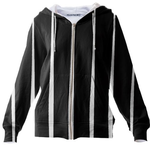 Slim fitting zip up hoodie with front kangaroo pockets metal zipper and drawstring hood.