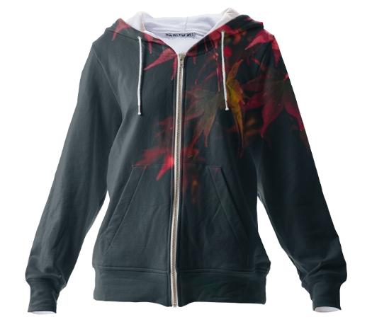 Slim fitting zip up hoodie with front kangaroo pockets metal zipper and drawstring hood.