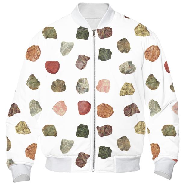 Light weight bombr jacket with your choice of white or black ribbing slight padding zip up front and side pockets. The inside is adorned with PAOM straps for swinging over your shoulders so you dont have to hold it.