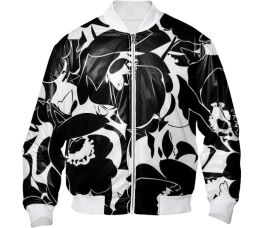 Light weight bombr jacket with your choice of white or black ribbing slight padding zip up front and side pockets. The inside is adorned with PAOM straps for swinging over your shoulders so you dont have to hold it.