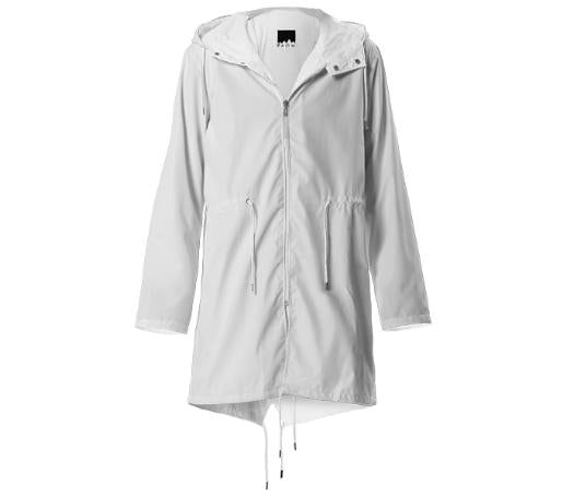 Light weight water resistant raincoat meant for easy layering in all sorts of rainy climates. Features waist & bottom hem drawstrings for definition and a double snap hood to protect against wind & rain.