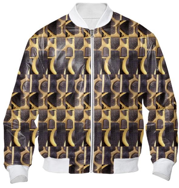 Light weight bombr jacket with your choice of white or black ribbing slight padding zip up front and side pockets. The inside is adorned with PAOM straps for swinging over your shoulders so you dont have to hold it.