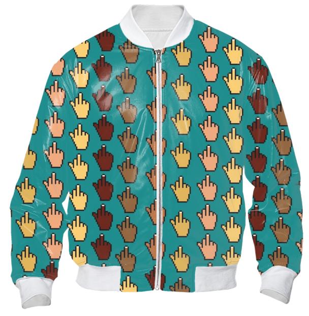 Light weight bombr jacket with your choice of white or black ribbing slight padding zip up front and side pockets. The inside is adorned with PAOM straps for swinging over your shoulders so you dont have to hold it.