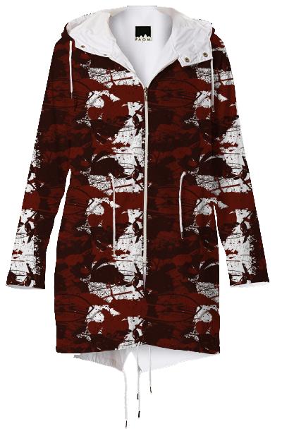 Light weight water resistant raincoat meant for easy layering in all sorts of rainy climates. Features waist & bottom hem drawstrings for definition and a double snap hood to protect against wind & rain.