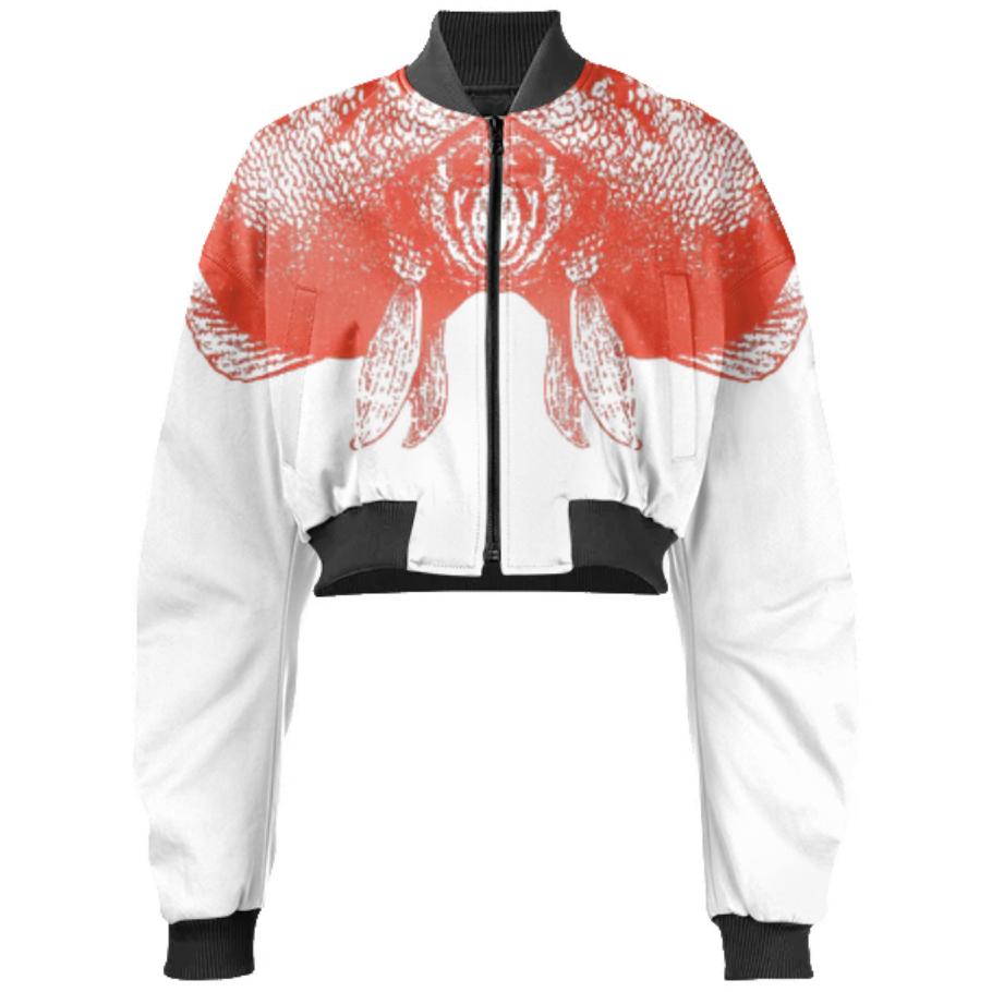 Designed by Gabriel Held this neoprene bomber jacket has a cropped fit with raglan sleeves a zip up front and two welt pockets. Matches with the Gabriel Held Mini Zip Skirt.