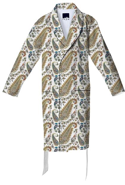 Comfortable fitting cotton robe with two front pockets and stylish black piping on the collar & pocket seams. Includes a black sash to tie at the waist or let hang through two side belt loops.