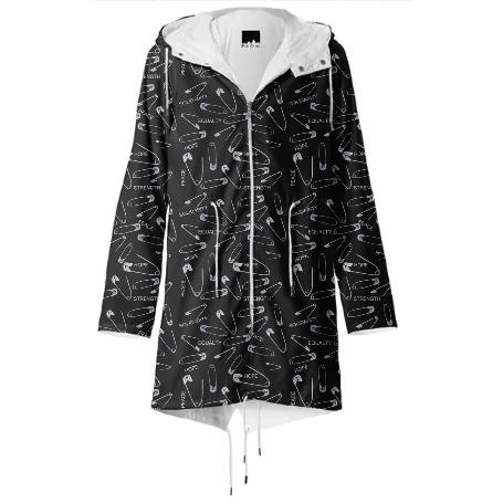 Light weight water resistant raincoat meant for easy layering in all sorts of rainy climates. Features waist & bottom hem drawstrings for definition and a double snap hood to protect against wind & rain.