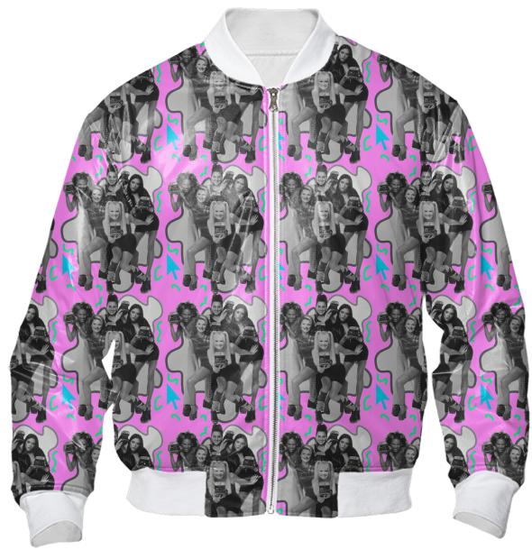 Light weight bombr jacket with your choice of white or black ribbing slight padding zip up front and side pockets. The inside is adorned with PAOM straps for swinging over your shoulders so you dont have to hold it.