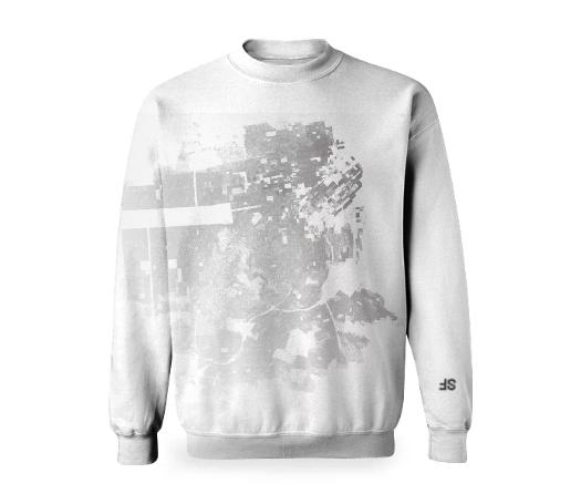 Basic crew neck sweatshirt with made with soft recycled polyester sweatshirt fabric. Features printed neck arm and bottom cuffs.