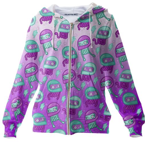 Slim fitting zip up hoodie with front kangaroo pockets metal zipper and drawstring hood.