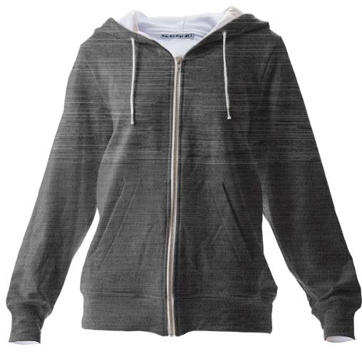 Slim fitting zip up hoodie with front kangaroo pockets metal zipper and drawstring hood.