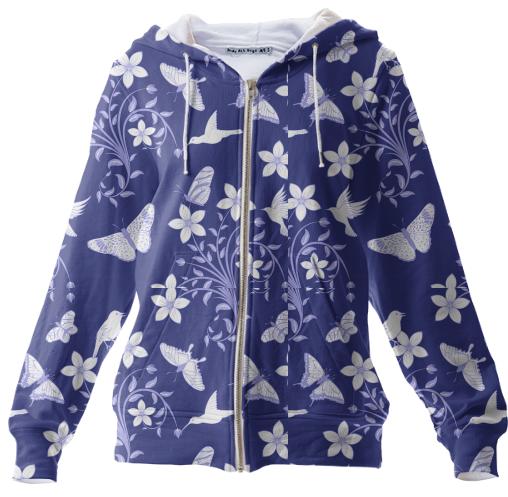 Slim fitting zip up hoodie with front kangaroo pockets metal zipper and drawstring hood.