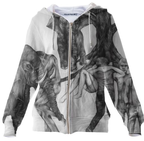 Slim fitting zip up hoodie with front kangaroo pockets metal zipper and drawstring hood.